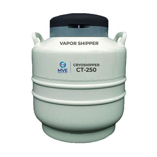 Los cargadores especiales seguros de MVE satisfacen las necesidades únicas de envío y almacenamiento criogénico de muestras biológicas. Los MVE CryoShipper CT-50 y CT-250 están diseñados para transportar bolsas de sangre de tamaños específicos. Nuestros exclusivos diseños de bastidor permiten almacenar de una a dos bolsas de sangre para limitar el movimiento de las muestras durante el transporte. El nuevo diseño también puede almacenar muestras en nitrógeno líquido después de la llegada al destino.